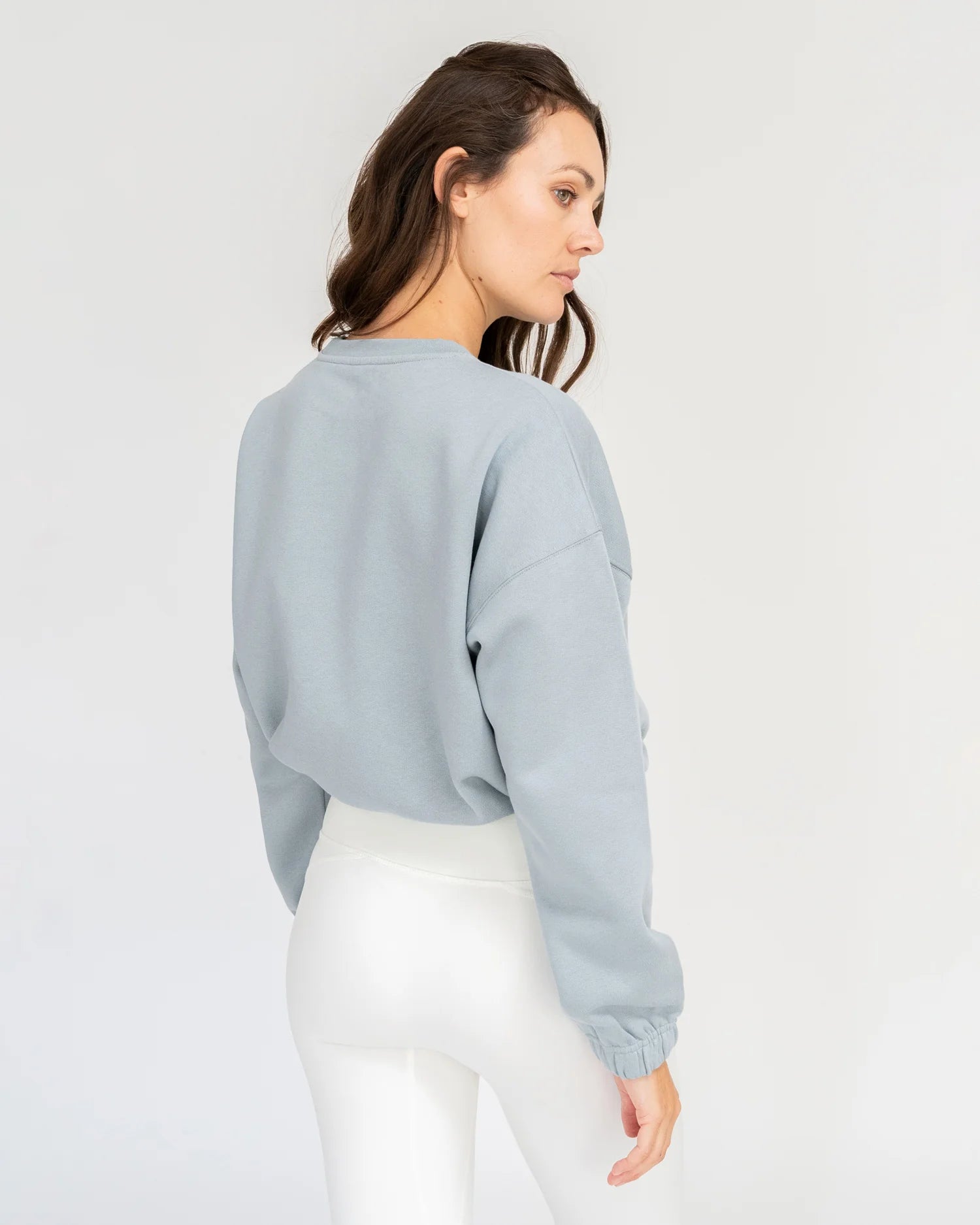 Unser Model Marie ist 174 cm groß und trägt Farbe Marshmallow und Stone Blue in Größe S.