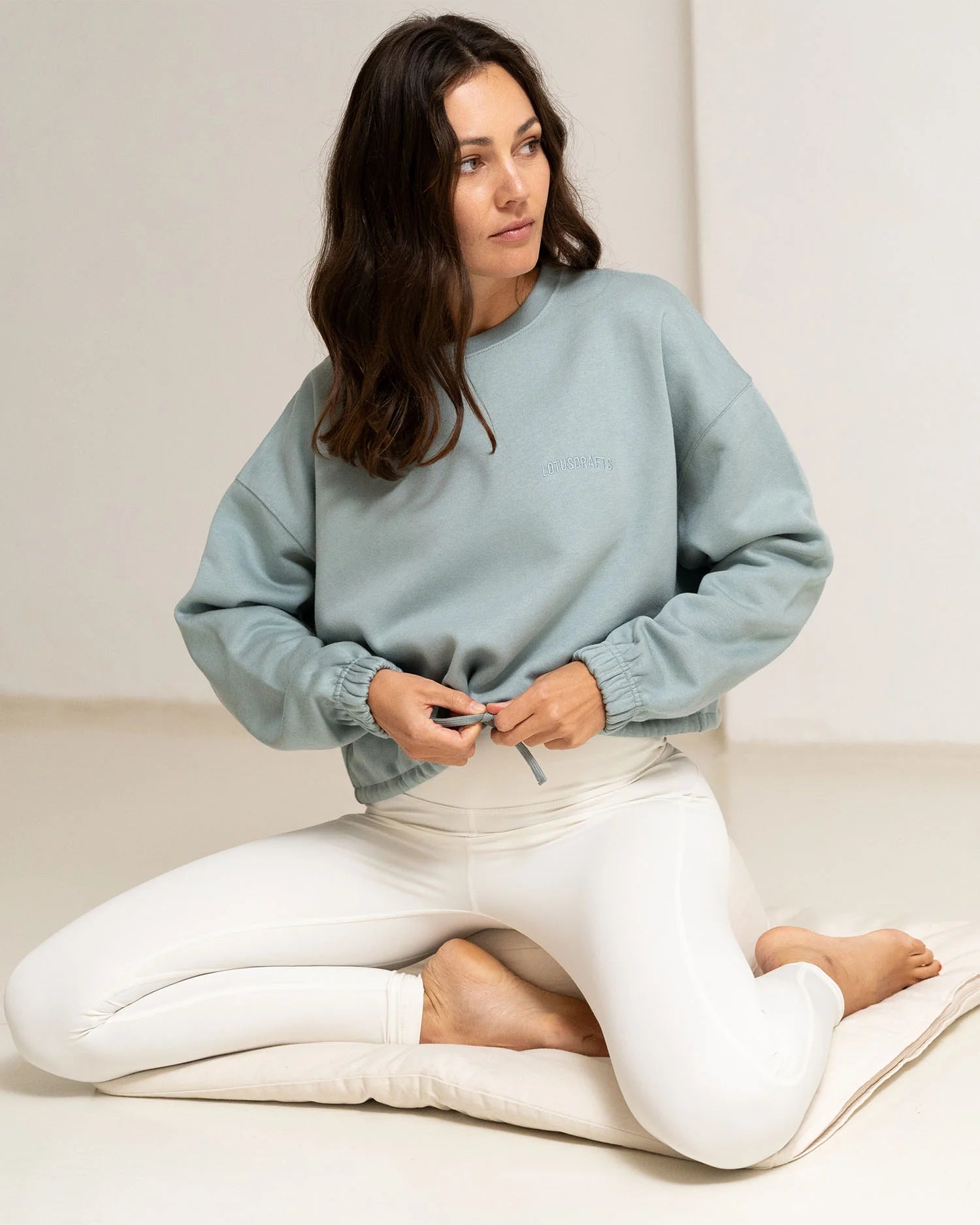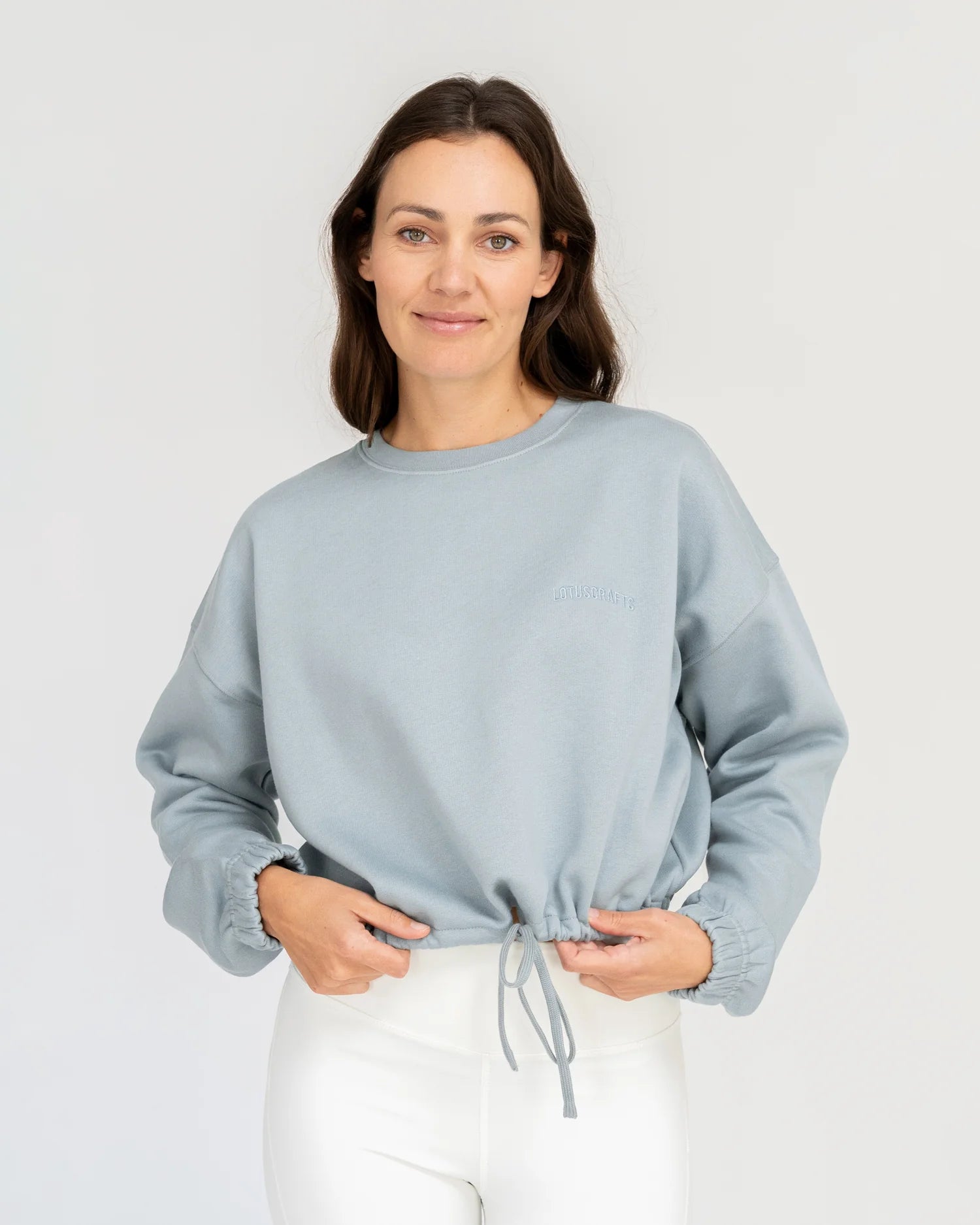 Dank elastischen Bündchen an den Ärmeln und einem verstellbaren Band am Saum kannst du den Sweater variabel stylen: locker offen für einen entspannten Oversized-Look oder geschlossen für eine definierte Silhouette. Eine dezente Lotuscrafts Bestickung auf der Brust, Ton in Ton gehalten, rundet das minimalistische Design ab.